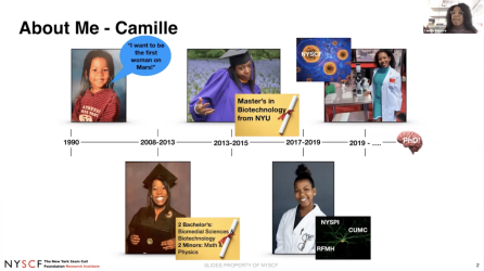 Camille Fulmore has always known she wanted to be a scientist. Her initial dream of becoming the first woman...Camille Fulmore has always known she wanted to be a scientist. Her initial dream of becoming the first woman on Mars may not have come true (yet) but she has found a new mission: helping find better treatments for patients and inspiring the next generation of young scientists. Camille joined the NYSCF Global Stem Cell Array team in 2019 and will soon embark on a PhD at the University of California, Berkeley. We spoke with her about her love of stem cells, what made her NYSCF experience special, and what she hopes the future of STEM will look like.